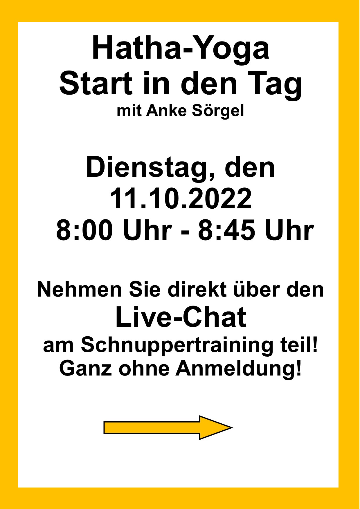 Nehmen Sie direkt über den Live-Chat am Schnuppertraining teil! Ganz ohne Anmeldung!